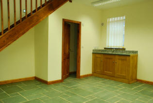 Unit 2 comprises of a self contained two storey office unit of 1000 sq. ft., The accommodation is open plan and provides two well proportioned rooms to the ground floor. The Ground floor room has a kitchenette and WC with an impressive Brazilian slate floor covering with windows overlooking the courtyard to the rear and the front parking area which has raised shrubbery beds, two original character oak beams have been retained and make a great feature to the second ground floor room.